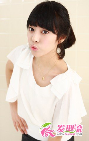 随意扎起的发髻,服帖的刘海,显的毫不做作。露出颈部优美线条,搭配细致的妆容,知性OL可以尝试此款发型。