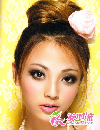 清纯的妆容,华丽甜美的花苞头,营造出时尚的潮女风范。精美的粉色玫瑰让造型更加的青春活力。