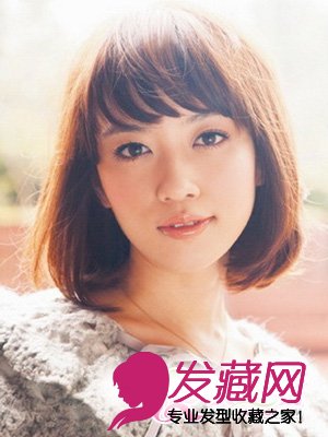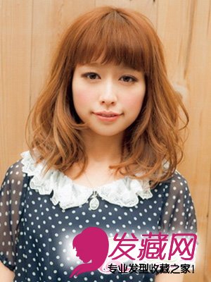 及颈部的长度搭配通透感十足的棕黄色染发,让肤色更加的透明通透!采用的覆盖式发型设计让刘海呈现出流畅的线条感,长长的齐刘海自然分开,无形中将女生那么具有魅惑的电眼完美展露,在新的一年,用这个可爱女孩的形象去电倒他吧!