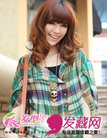 厚厚的齐刘海设计是这款发型的亮点,轻松减龄在这里得到很好的呈现。齐刘海弥补了额头过宽的不足,两束中长卷发分别披在两侧肩上,显得很有女人味,轻轻外翻的卷发,体现女孩子俏皮可爱的个性,挑选亮丽的亚麻黄,很时尚,很美。