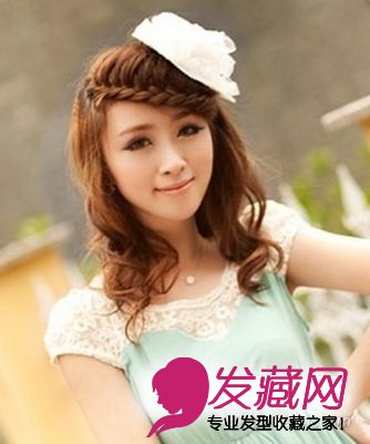 将刘海发型打造出刘海编发的效果,增加了发型的时尚感,刘海编发发型将女生的额头包裹了起来,缩小了女生的脸部面积,从而起到小脸的效果,搭配一个蕾丝发饰,优雅甜美气息瞬间倾尽众生。