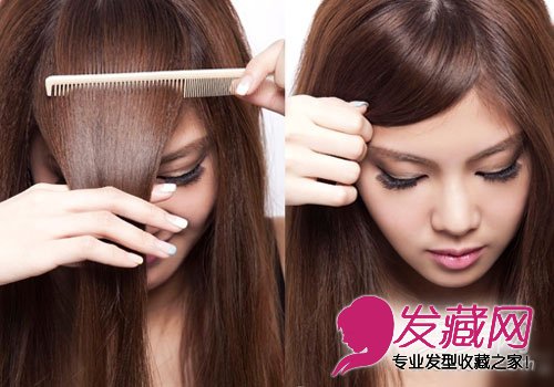 1. 无论中分或旁分,都先将所有刘海往前梳顺。