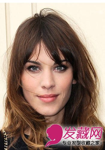 艾里珊·钟(Alexa Chung)的刘海看起来特别酷,一点都不呆板,这是因为额头前的刘海看起来更加随意,有一些空隙,塑造出一种缺陷感的刘海,当微风吹过,刘海随风飘起,带有几分摇滚风,在打造这款刘海上,将头发吹得半干,再喷上喷雾型的产品,用手指将刘海随意拨开,这款刘海适合长脸的女孩。