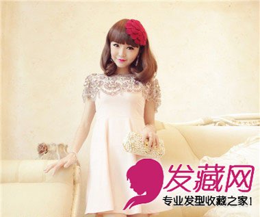 ,卷度内扣,发丝丰盈妩媚,搭配粉色蕾丝连身裙,公主气质尽显