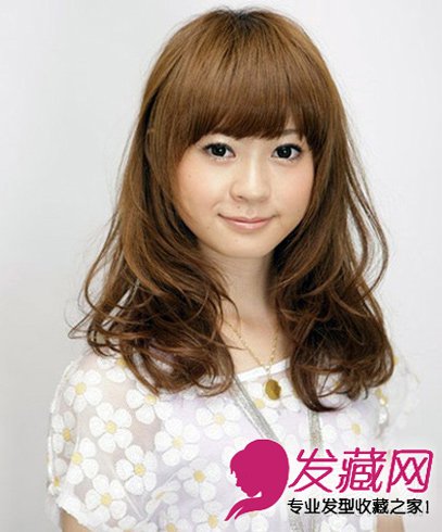 编辑点评:齐刘海顺着脸颊慢慢加长,显出完美弧度,自然随意。在刘海的修饰下,脸型显得更小更精致,螺旋式缠绕卷曲的头发搭配上棕色的发色,皮肤色彩显得更丰满,女人味十足。