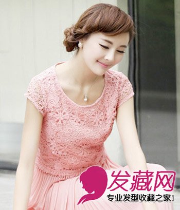 造型,也是夏日妹纸们扎发首选,可以尝试把刘海一起编进去,穿搭粉嫩裙装,甜美文静。