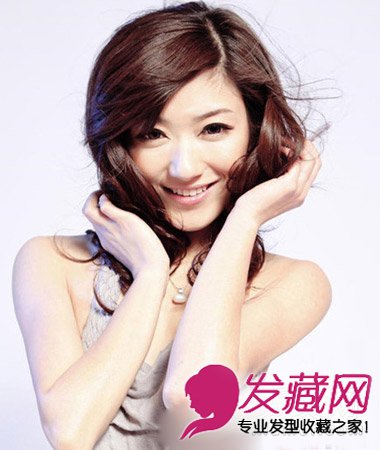 这款斜刘海发型,简单又不失时尚感,棕色染发衬托出女生白皙的皮肤,微卷的斜刘海设计加上蓬松的烫卷设计,散发着无限的魅力。