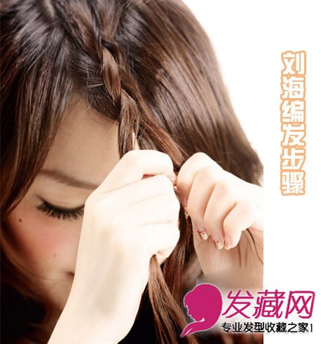 刘海编发+鱼骨辫diy 刘海编成精致的斜刘海辫子发型(3)