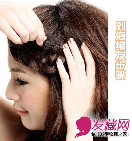 刘海编发+鱼骨辫diy 刘海编成精致的斜刘海辫子发型(5)