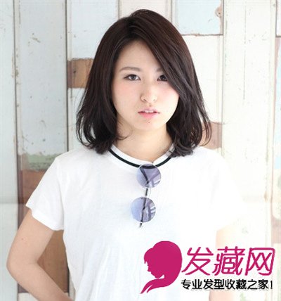 及肩头发,发尾蓬松内卷,三七分长刘海,即使额头不宽也很衬托脸型,加上天然的黑发,清新自然,尽显小女生气息。