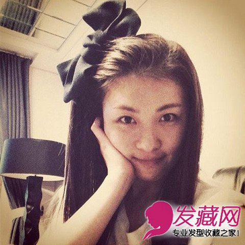 像河智苑这样,用大蝴蝶结将刘海夹到侧边,绝对是可爱的收服刘海方法。怕蝴蝶结太萝莉,可以选些精致低调的发卡。