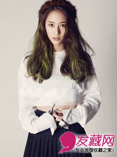 的一成不变,那么偶尔也可以学Krystal郑秀晶这样将头发做成空气感卷发造型,发尾用黄色做挑染,非常大胆,但是非常有个性。