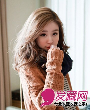 厚重的长卷发看起来很有柔美感,搭配斜刘海瞬间勾勒出一种独特的气质,亚麻色的