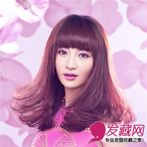 灯光下泛着隐隐酒红色的长发也十分醉人,厚重的刘海有很强的蓬松感,发梢处采用的外翘的手法,使整个人更为干练,一举手一投足间,气质十足。