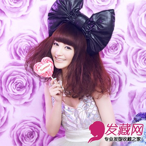 除了浪漫的大卷,蓬松感加倍的内扣卷也是姚笛的大爱,在酒红色长发上搭配超大黑色大蝴蝶结,再加上超可爱的表情,当然想要拥入怀中!