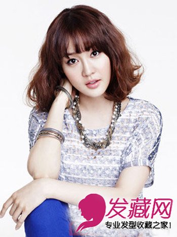 韩式的烫卷齐刘海 清爽自然发型设计大全(9)