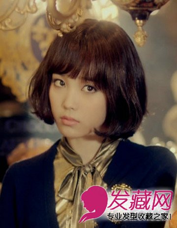 稀薄的齐刘海与短发波波头的搭配更显气质感,而且发尾微微卷发更显灵动与活泼气制裁,搭配的服装更显优雅范。