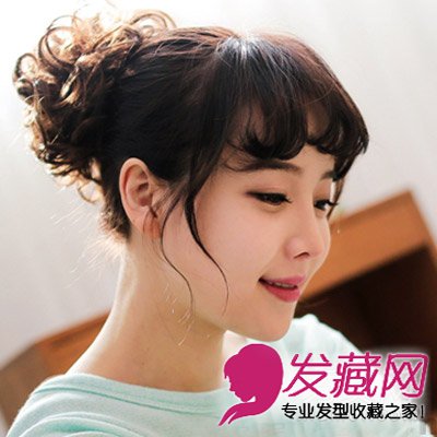可爱的花苞头造型搭配上空气刘海勾勒出别致的气质感的一面,甜美的空气刘海勾勒出气质与个 性的一面,蓬松的卷发盘起来更是时尚感。