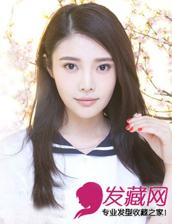 柔亮的黑发发型衬托出女生纯美的气质,三七分刘海轻松打造出吸睛的小脸,简单的直发造型非常具有校园小清新范。