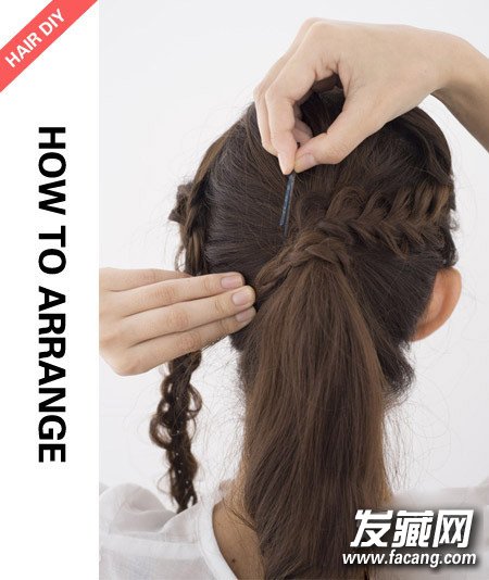 step3:把辫子用发夹固定在脑后的马尾。