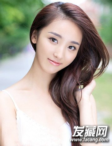 这个娇小的小脸女生,侧分的长发随意拨弄到一边,小女人味十足,栗棕色的秀发柔亮丰盈,尽显淑女范。