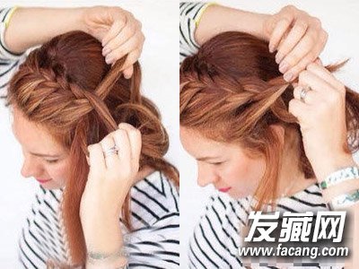 Step3 将靠近额头位置的刘海的头发一点点的加入到三股编中,就是蝎子辫~