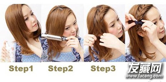 3. 然后将刘海沿着八分的那一侧紧贴发根编成小辫,如果碎发太多可以借助一些顺发喷雾先打湿再编但绝对不能用黏糊糊、硬邦邦的定型产品。