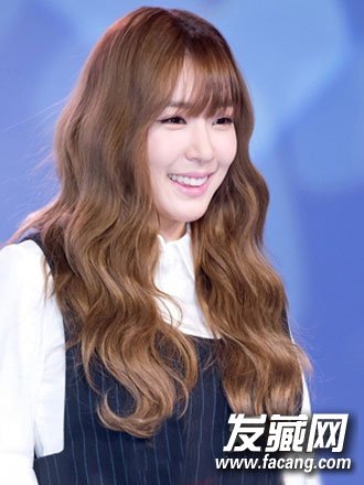 OL们经常打理的这款韩式齐刘海波浪卷发,大波浪式的