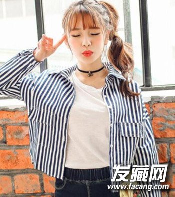 一款集潮流与时尚的扎发发型,可爱的侧边扎发再加上蓬松的灯笼辫造型的设计,甜美的半透明空气刘海显露出无比的时尚感来,造型简单而且大方。