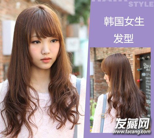仙气长发适合所有的女生,飘逸的长发是增加气质的最佳神奇,齐刘海稍微斜拨,长发紧贴脸颊披下,发尾烫成大卷,显得优雅大方。