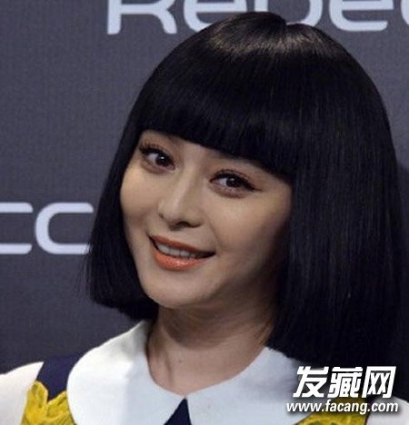 范冰冰以极黑、超齐的刘海示人,这厚度似乎也太土气。