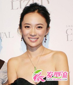 ,洋溢着优雅高贵的气质。把头发全部盘起,露出光洁的额头,把美丽的脸容一展无遗。略带蓬松凌乱的发型,增添了造型感。