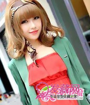 齐肩的中长发发型,长度恰到好处,在寒冷的冬日可以御寒,是很多MM钟爱的一款发型。发尾营造出微卷的弧度,为整个发型注入了灵动气息,显得充满活力。厚重的齐刘海,突显大眼小脸的效果。染上今年大热的亚麻色发色,再加上有着浓郁复古味的发带,非常时尚。