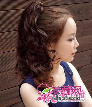 无刘海设计 将波浪卷发连同长长的刘海全部梳起,束成一个俏皮的马尾,尽显小女生的活泼个性。无刘海的设计把美丽的脸容一展无遗,此款刘海对脸型的要求也是较高的。打造韩式俏美妞,让人一见倾心!