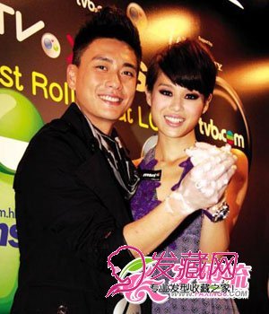 一款非常时尚的男生短发,利用发蜡和吹风机营造出高耸的造型。清爽的女生短发,略显蓬松,令这对情侣显得很是般配。