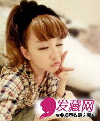 这款齐刘海发型,非常有特色的地方是刘海内卷的打造,成为了这款马尾辫发的亮点哦!微微凌乱感的齐刘海,加上同样有着微微凌乱感的马尾辫,一条黑色的发带将女生发型打理整齐,特色鲜明。