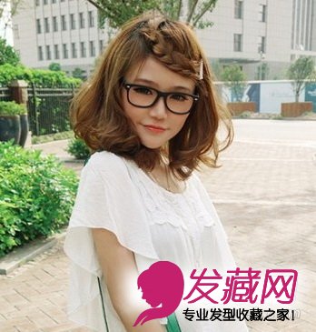 形状饱满蓬松的梨花头发型,同样利用麻花辫时尚元素来增加女生发型的多样性,不同的是,这款发辫从顶部开始编织,打造出半圆弧形状,紧贴额头的同时,几乎遮盖住了半边额头,圆弧形状非常美丽哦!