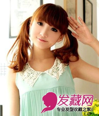 齐刘海发型扎法女生齐刘海发型,这款双扎的马尾发尾,给人一种返璞归真的童颜气质,整体上搭配清凉雪纺衫,给人清爽甜美的可爱气息。