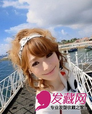 之一,加上女生蓬松感的空气烫设计,斜刘海盘发发型展现着女生大气的气场,鲜亮的亚麻色染发颜色,发型设计充满大自然的气息。