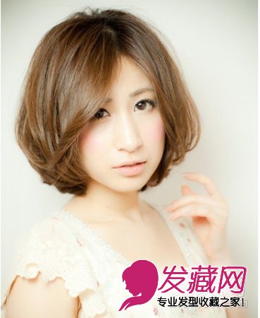 充满小清新气息的中分短发波波头,八字型中分修饰过宽的额头以及颧骨,柔和脸部线条,内扣烫发为发丝注入空气而变得轻盈,同时达到瘦脸的效果。