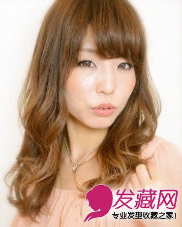 同样侧分刘海,在卷度上的运用不同,效果也是不同。中号的波浪卷适合自然清新风。