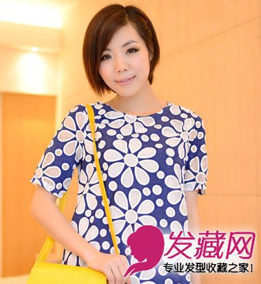 造型,看上去非常具有时尚干练感,而侧分的斜刘海却大大修饰脸部肉肉,圆脸女生立即变得大方起来。