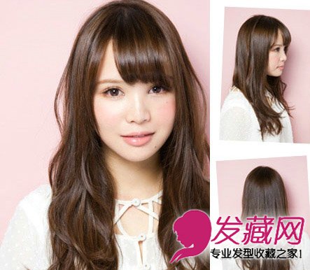 小编点评:深棕色染发质感轻盈绵软,散发出迷人的光泽。富有质感的长卷发与轻薄的斜刘海有效地拉长了脸部比例,打造出一张精致的鹅蛋脸。明亮的双眸和粉嫩的唇彩,尽显温婉动人的淑女气质。