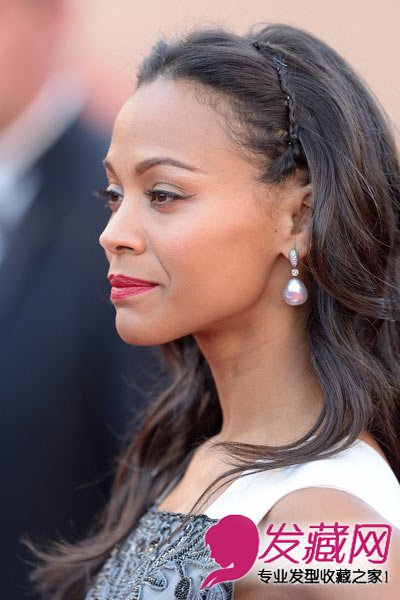 可以借鉴Evan Rachel Woods的这个精致的造型,用一个简单的、纯黑色的发箍将碎头发都别在后面,突出了脸部线条和立体感。