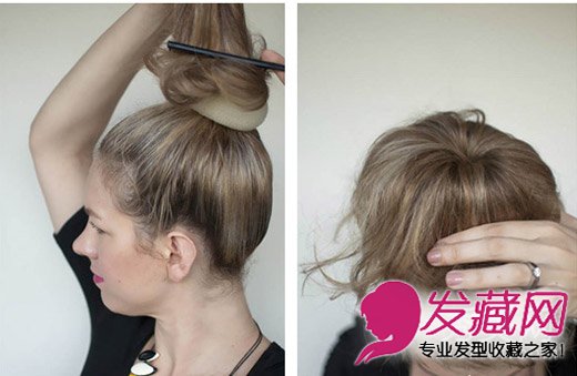 step5:再用密齿梳将发束逆方向梳理成蓬松状。