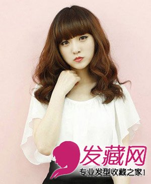 蓬松微卷发齐刘海卷发发型 内扣齐刘海突显娇小的脸蛋