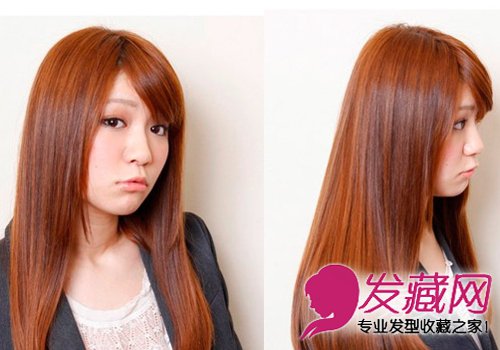 发型点评:色彩靓丽的棕黄色直发华丽张扬,层次感自然的直发随意覆盖在脸颊两侧,宽脸无形中就缩小了不少。