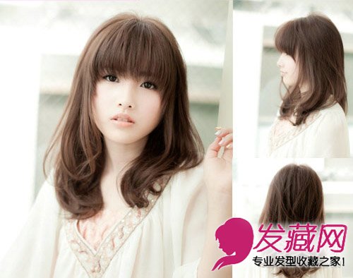 及眼齐刘海搭配温婉中发,散发甜美气息。