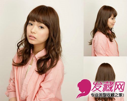 斜刘海稀薄长卷发发型 修颜刘海包别大饼脸