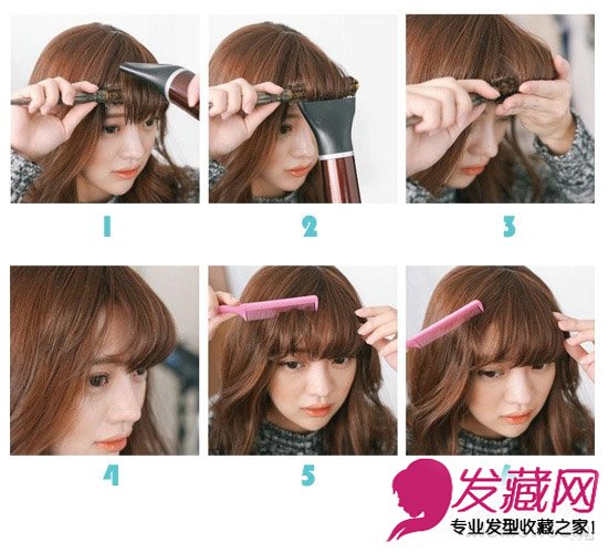 Step 5&6.用齿梳整理。使刘海与其余头发自然融合。